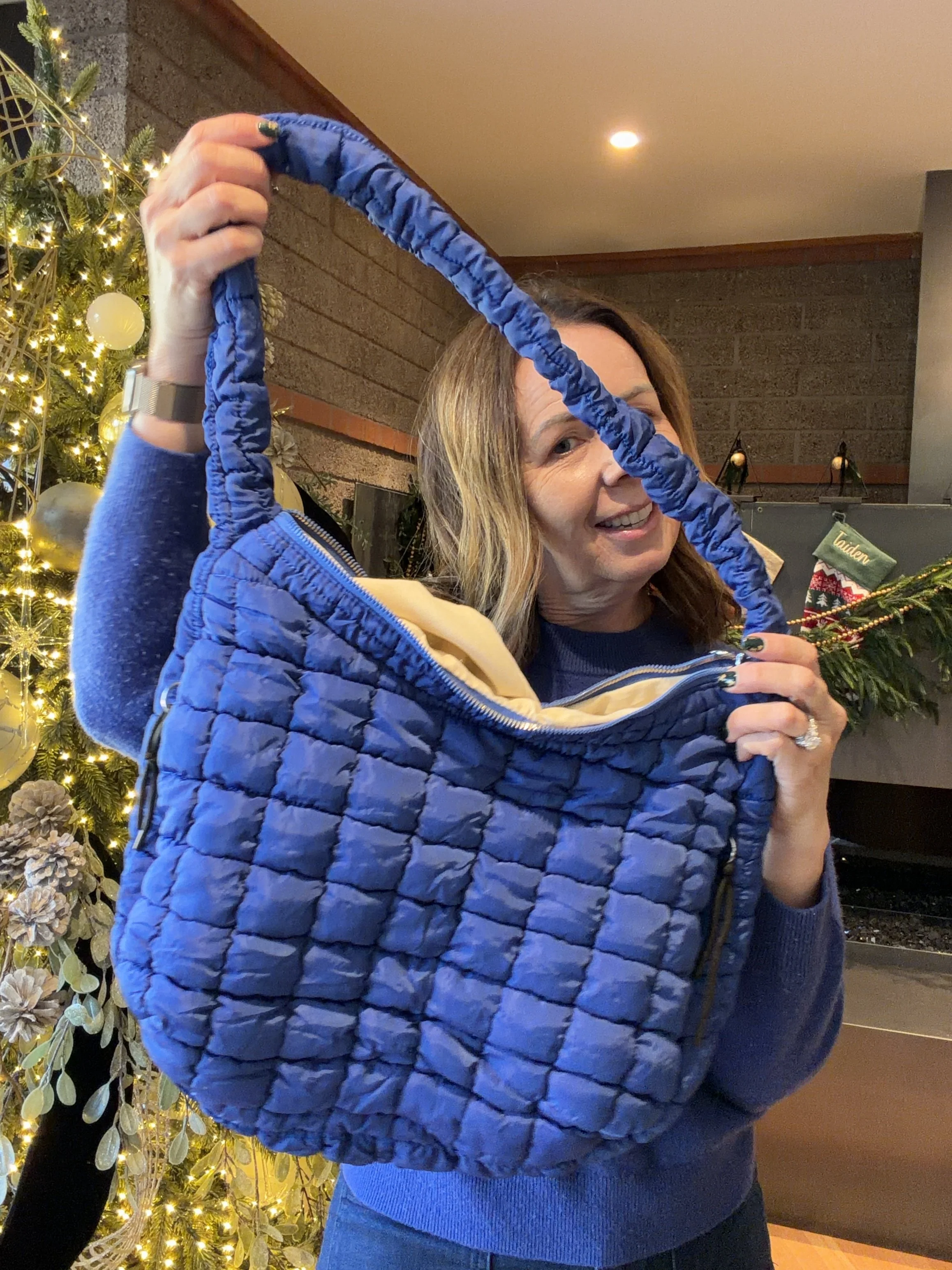 Puffer Quilted Shoulder Bag: Super cute & roomy bag. This can be used as a personal item or will pack down and you can use it upon arrival.